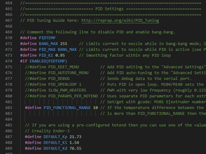 You may also want to update your max temperature to 285C since you no longer have a limit due to the PFTE tube. We’ll get to this in a second but knowing where the PID tuning settings are in Marlin so you can enter your new settings in for your next flash is also a good idea.